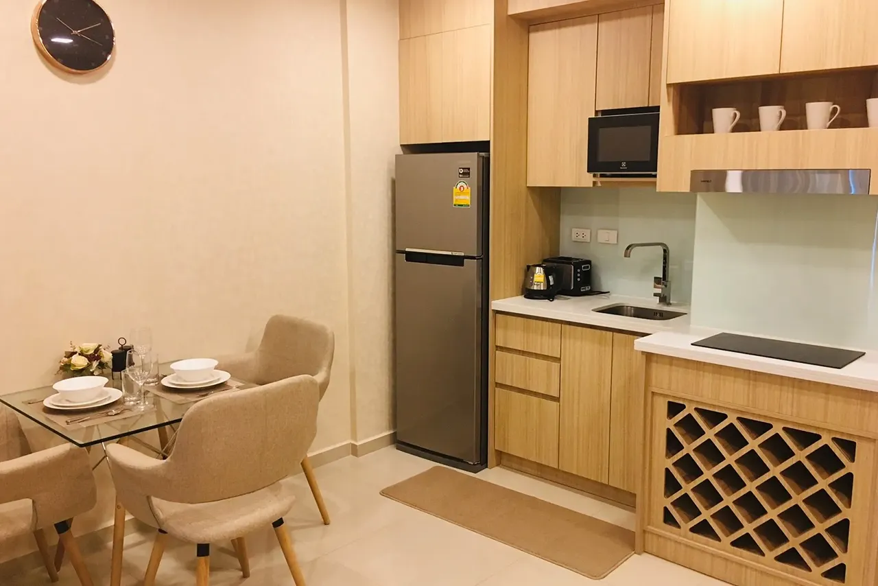 Every room comes fully furnished with built-in furniture such as a European-style kitchen set, a built-in wardrobe, and a water heater.